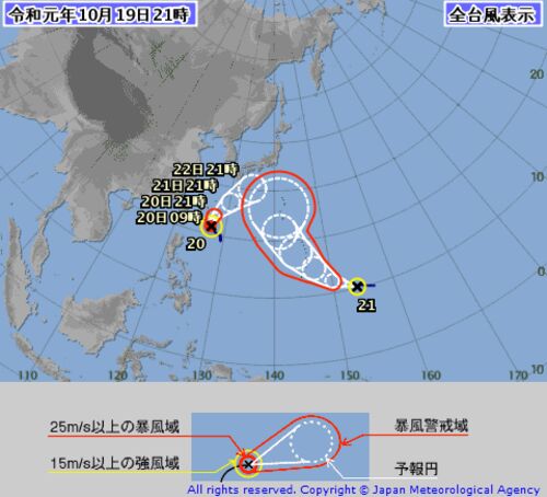 台風19号がまた関東を襲う。 千葉の被災地がまたまた被害に合う。 今日、空気がヒンヤリとしてきた。これは、大陸の高気圧が勢力を強めている証だ。台風は東寄りに進路をとるだろう。12日土曜日が関東襲来の時となるだろう。台風の進路の右側にあたる伊豆…